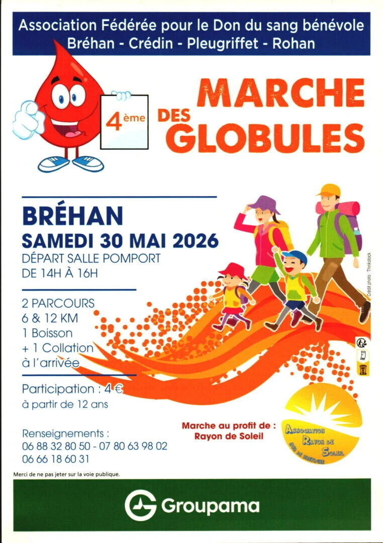 marche des globules 2026L’amicale des donneurs de sang bénévoles organise sa 4ème marche des globules le samedi 30 mai de 14h. à 16h.